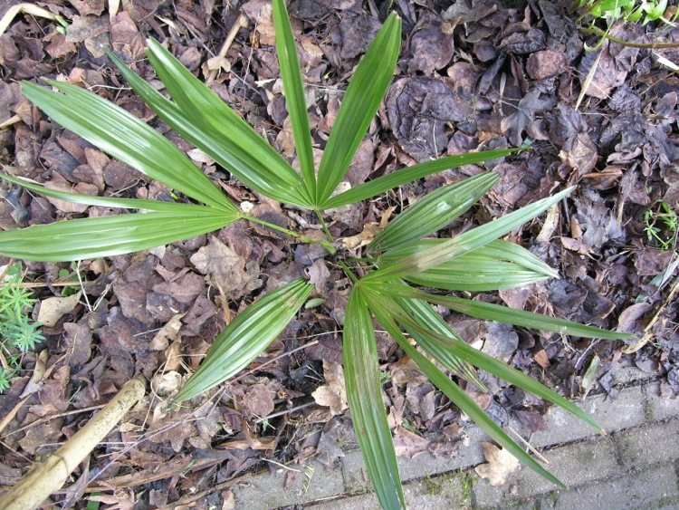 Grappig dat dit genus zoveel discussie oproept, terwijl de enorme variatie bij Chamaerops daar zelden aanleiding toe geeft. Neem nu deze Trachycarpus geminisectus, de afbeelding hieronder is van een zaailing van GP uit dezelfde batch. Ze gelijken niet erg, met wel het stijve blad als gemeenschappelijk kenmerk, maar dat geldt ook voor de Trachycarpus sp. van €7 op de tweede foto. Dit is een toevallige aanschaf omdat de palm opviel door zijn compacte stijve groeiwijze (groeit nu in de schaduw vandaar de langer bladstelen). De derde foto toont Trachycarpus sp. (takil) 'Kumaon' eveneens van GardenPalms. Deze ontpopte zich als een snelle groeier. Trachycarpus sp. (takil) 'Kalamuni' daarentegen groeit trager en lijkt deze winter niet ongeschonden door te komen (bladschade).