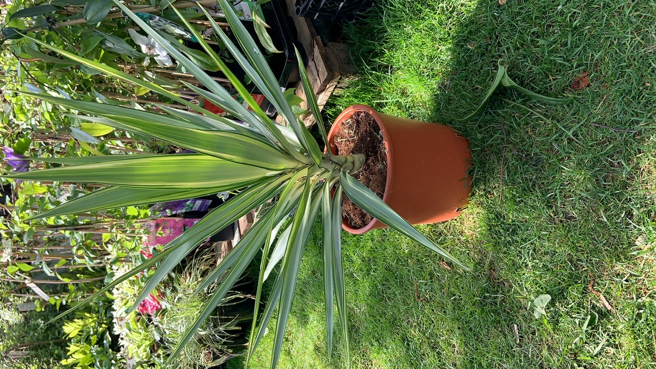Vandaag een impulsaankoop gedaan. Voor een zacht prijsje deze mooie Yucca gekocht. Na wat googlen denk ik dat dit een Yucca Gloriosa Variegata is maar ik weet het niet zeker.