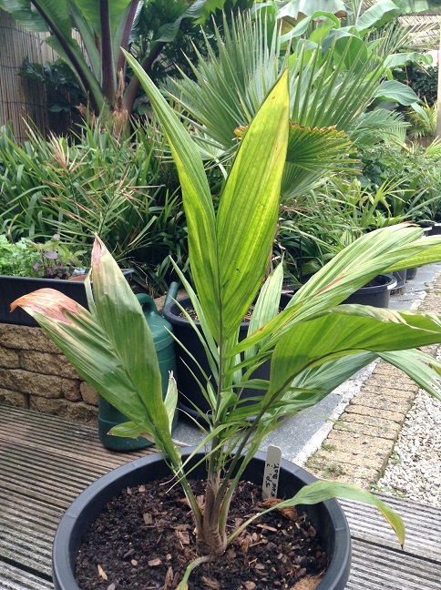 Zaad meegenomen uit Singapore botanical 2 jaar terug. Thusi in de war met de hoeveelheid fotoos en zaden, hij heeft 2 jaar naamloos hier gegroeid, en een van de snelst groeiende palmen die ik ken.