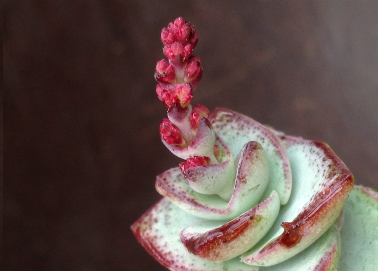 Mijn Crassula's graaf ik elk voor jaar in en graaf ze in het najaar weer uit om grote dikke planten te kweken. De bladuiteinde worden door de UV-straling ook rood, misschien dat jou rode uiteinde ook verkleurd zijn door UV-straling als je de plant buiten hebt staan natuurlijk.