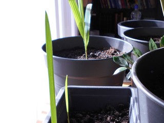 foto 4, in september 2017 gezaaid, een 20tal kleine zaden in 1 pot, op dit moment komen er 3 uit, maar zijn dit wel palmen ???