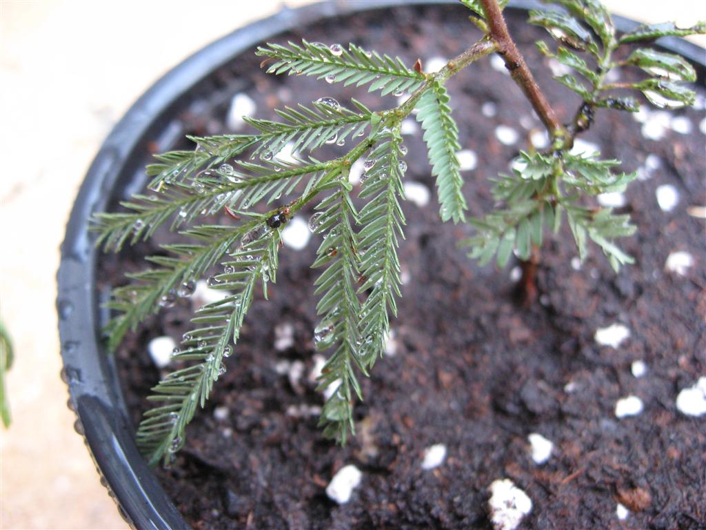 Of de blaadjes zich 's nachts dichtvouwen heeft men niet opgelet. Van de stekels wisten ze ook niet en ik zie er nu ook nog geen. Hopelijk dat ie door de verhuizing heen gaat komen en in dit potje aanslaat...
