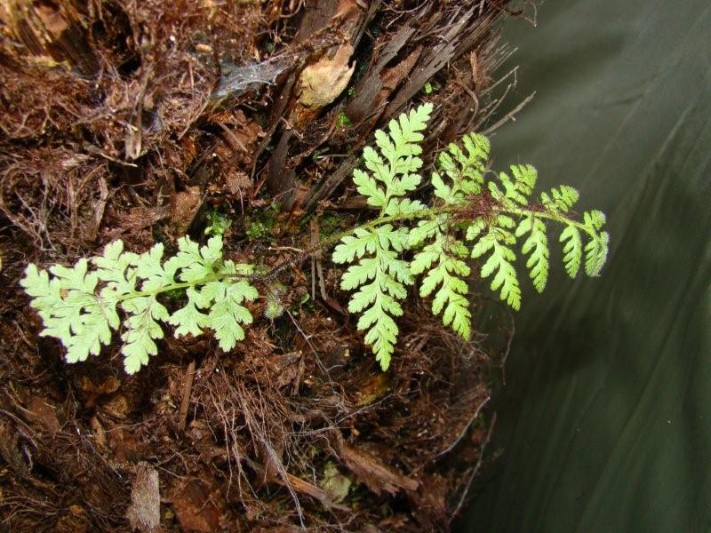 Langs de zijkant van onze boomvaren komen er een varentje uit, waarvan ik denk dat het dicksonia antartica is.