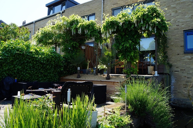 Onze tuin is klein, op het noorden maar met een prachtig uitzicht aan het water.