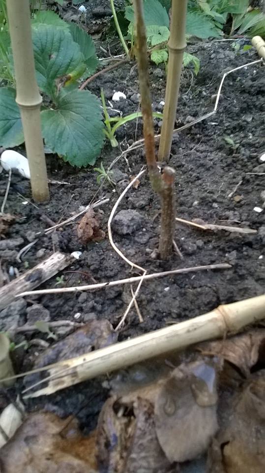 Ik heb 1 stek buiten overwinterd. Rond de stek heb ik bamboe stokjes gezet. Daaromheen en overheen fleece doek gewonden. Daar twee zakken met isolatie-schuimpjes omheen, in een afgesloten compost silo. Op de foto is het bouwwerk helemaal links te zien (onder de andere winterbescherming stonden Musa basjoo en sikkimensis en hedychium tara). Een deel van de stengel is afgestorven maar het onderste deel lijkt nog te leven. Volgens wat ik gelezen heb sterft hij buiten bovengronds af en komt dan uit de grond weer op. Voorlopig nog geen groei te zien.