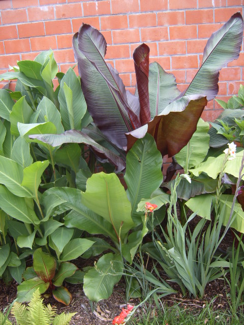 De canna's staan in de zon van s'morgens tot rond een uur of 14. Het is het eerste jaar dat ze in de grond steken. Sommige waren zeer kleine knollen. De bamboe is de Phyllostachys aureosulcata en Phyllostachys aurea wisten ze me te zeggen (groene en gele reuzebamboe). Heb ook nog één stek van de nigra soort staan.