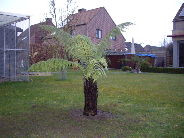 Vorig jaar bij Guus mijn eerste Dicksonia gekocht en na een jaartje in pot was die mooi geworteld. Vandaag na eerst advies te hebben gevraagd aan Eduard ( veel dank ) hem in volle grond geplaatst onder mijn notenboom( op foto niet te zien) zodat er in de zomer genoeg schaduw is.
