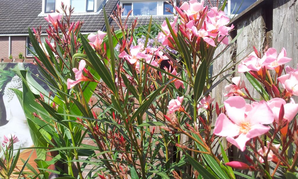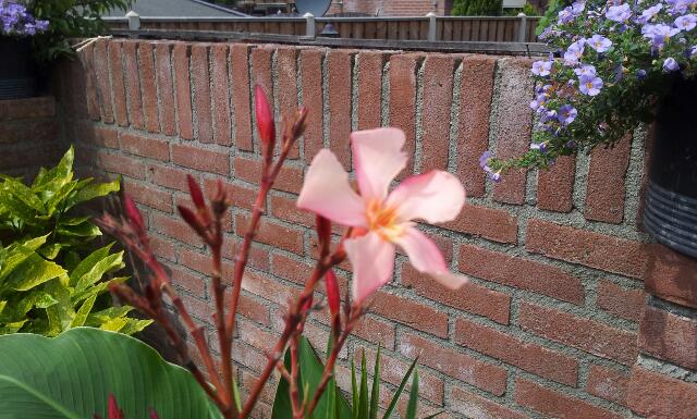 Zo. . Ruim een maand verder. Goed weer, alles groeit lekker. Oleander is gaan bloeien, zit helemaal vol met knoppen. Maurelli gaat heel groot worden, denk Ik zo. .
