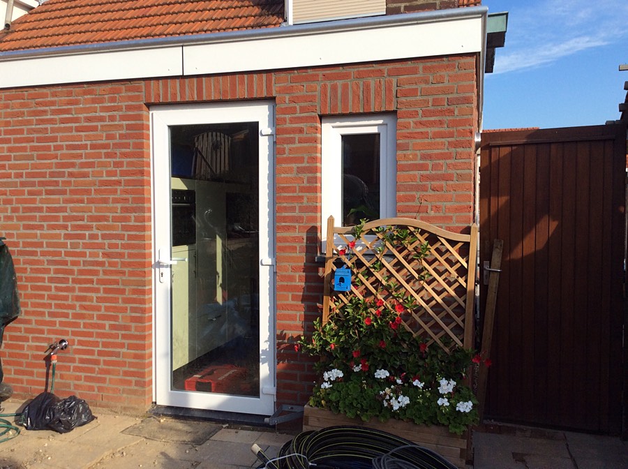 Omdat de achter en zijgevel van de aanbouw enkele scheuren vertoonde in de buitenmuur heb ik besloten om de buitenmuur te slopen en te vernieuwen.