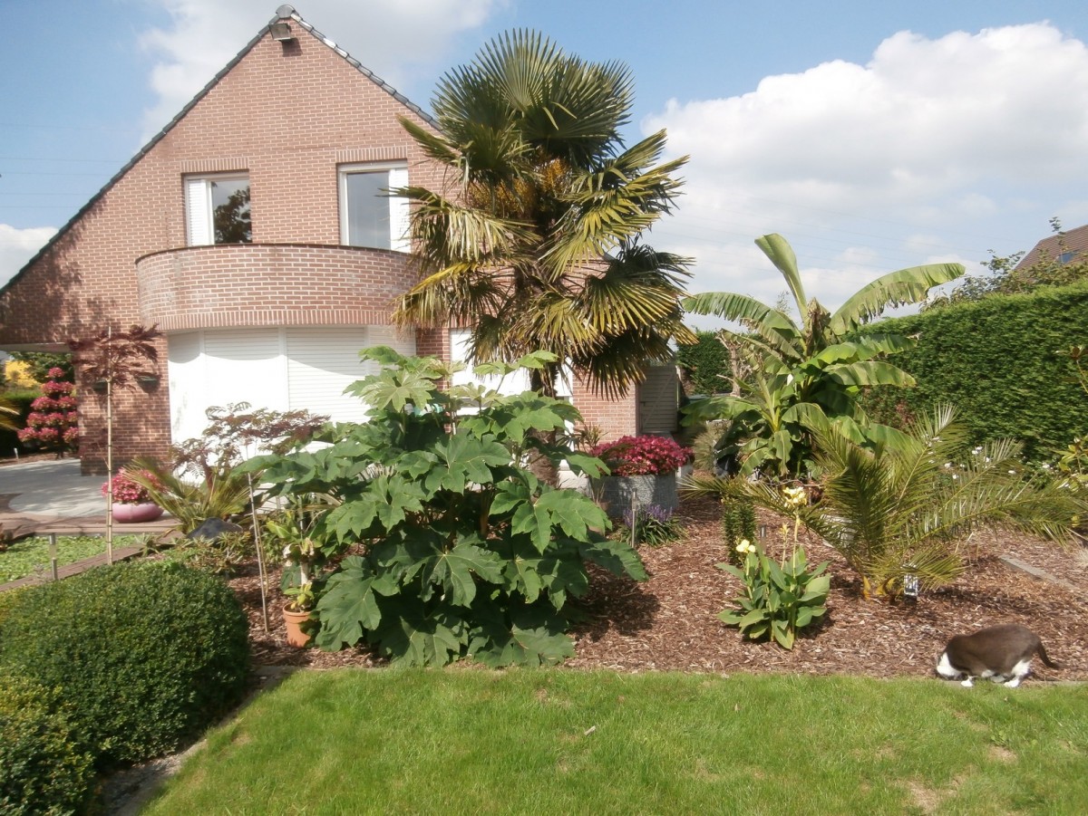 Zeker de Tetrapanax, die is echt enorm gegroeid, het hoogste blad komt al boven mijn hoofd uit. Maar ik had misschien wel beter in het voorjaar maar 1 stam overgehouden. Nu zijn er wel 5 grote stammen. Zou ik daar 1 stam van kunnen uit de grond halen volgend voorjaar zonder veel problemen?