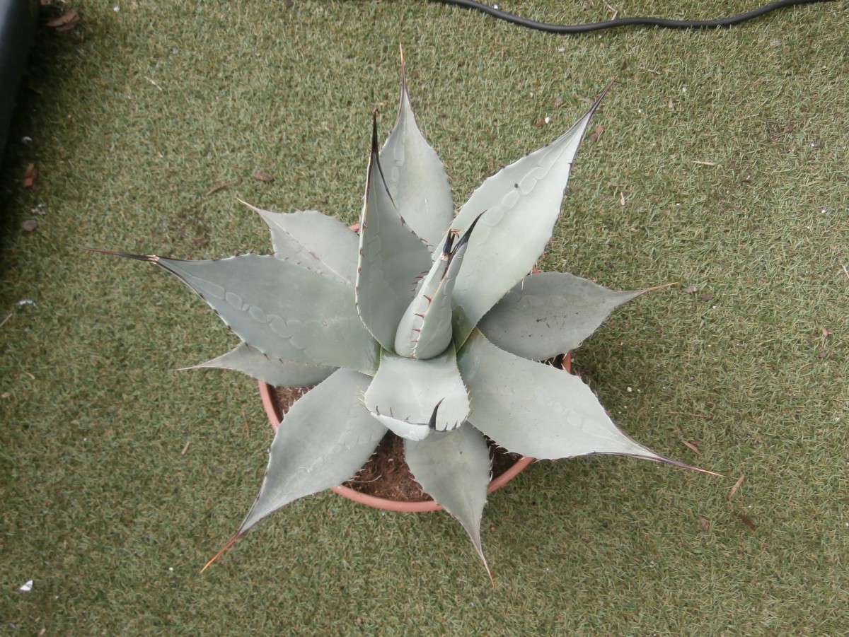 Brahea armata daarentegen is al mooi grijs.