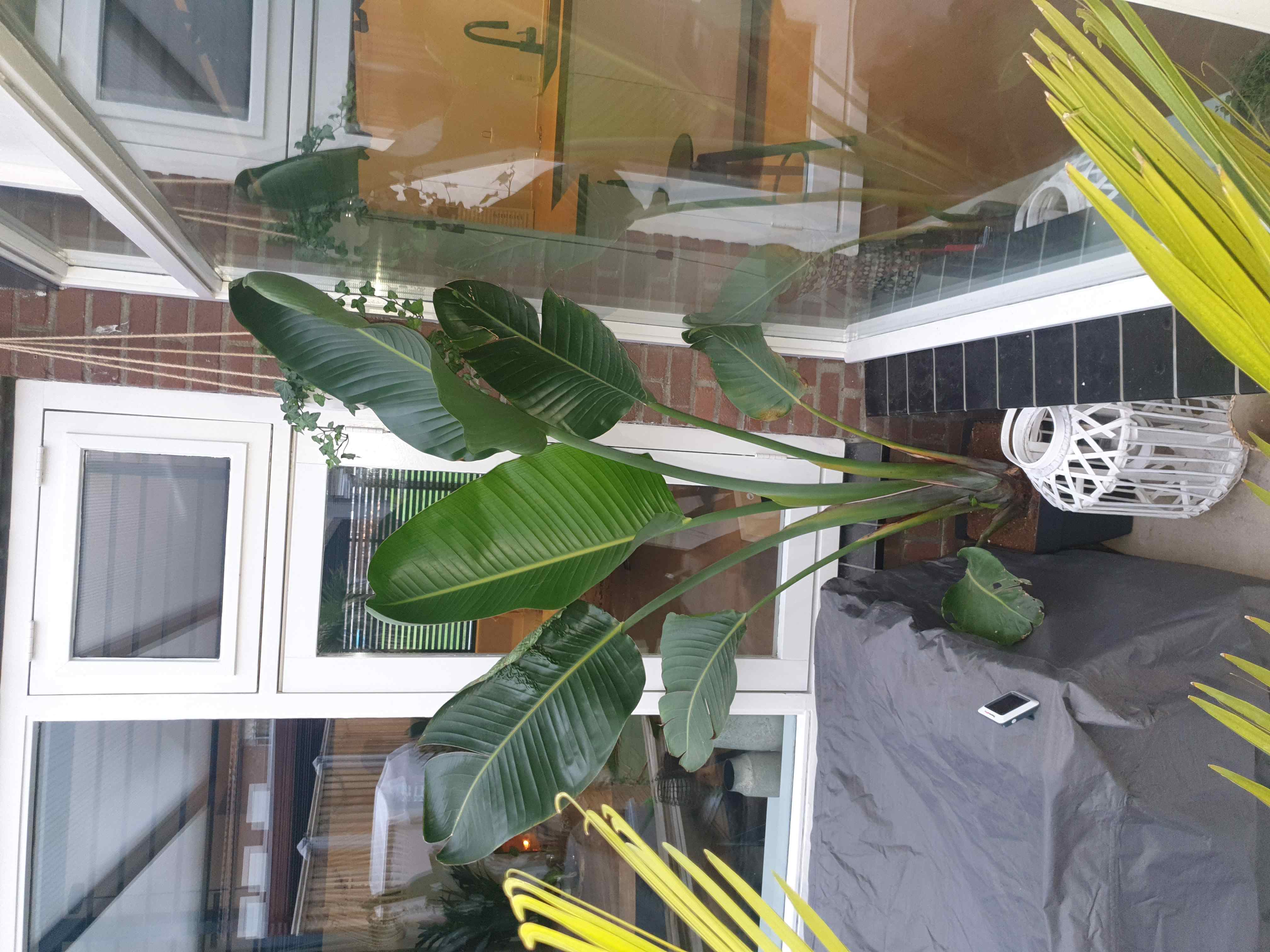 Thanks allemaal. Strelizia Augusta (of is het de Nicolei ?) groeit binnen rustig verder een meet nu een hoogte van 280 cm.Waarschijnlijk dus ook de laatste winter dat ie binnen kan staan, want hij zit echt tegen het dak aan.
