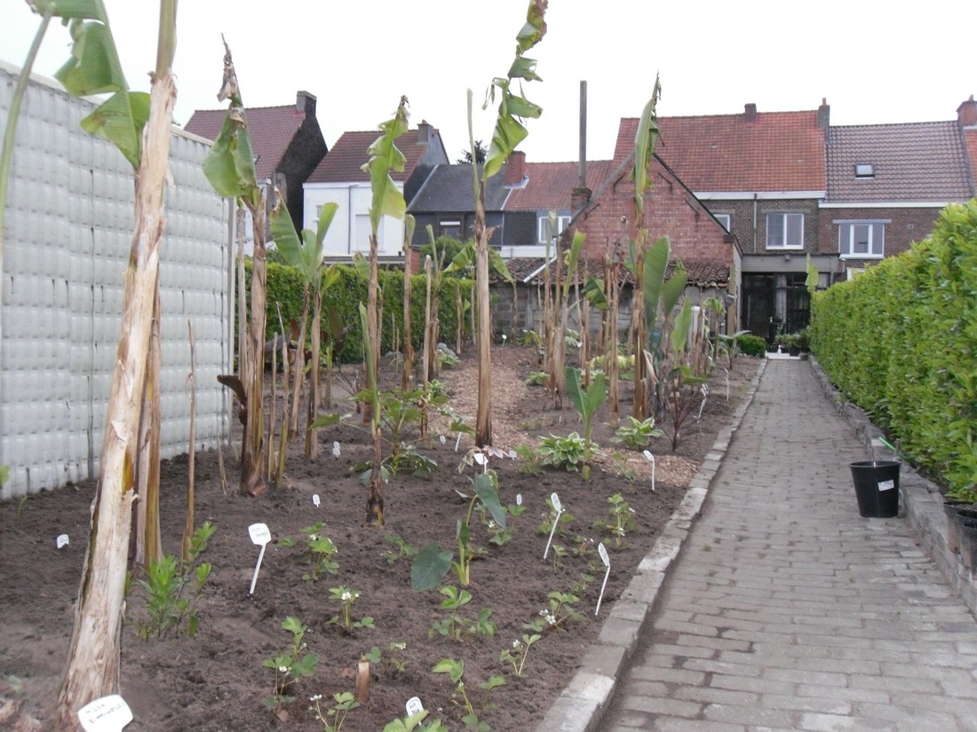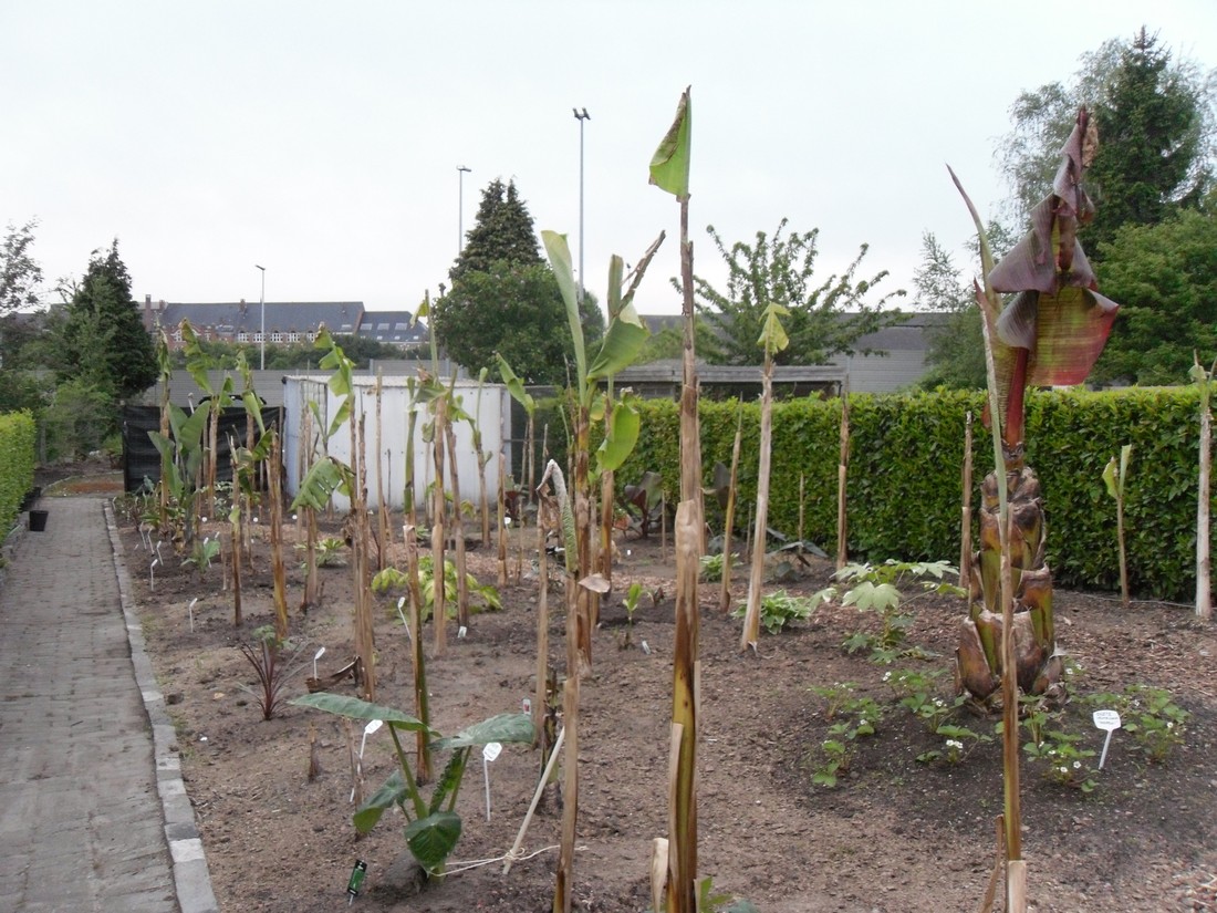 De tropische bananen staan nog even in de serre en ga ik definitief volgende week in de grond steken.