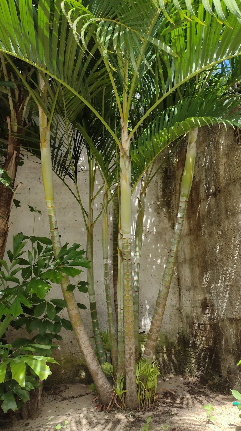 Caryota mitis (fishtail palm) begint best groot te worden, nog geen bloei.