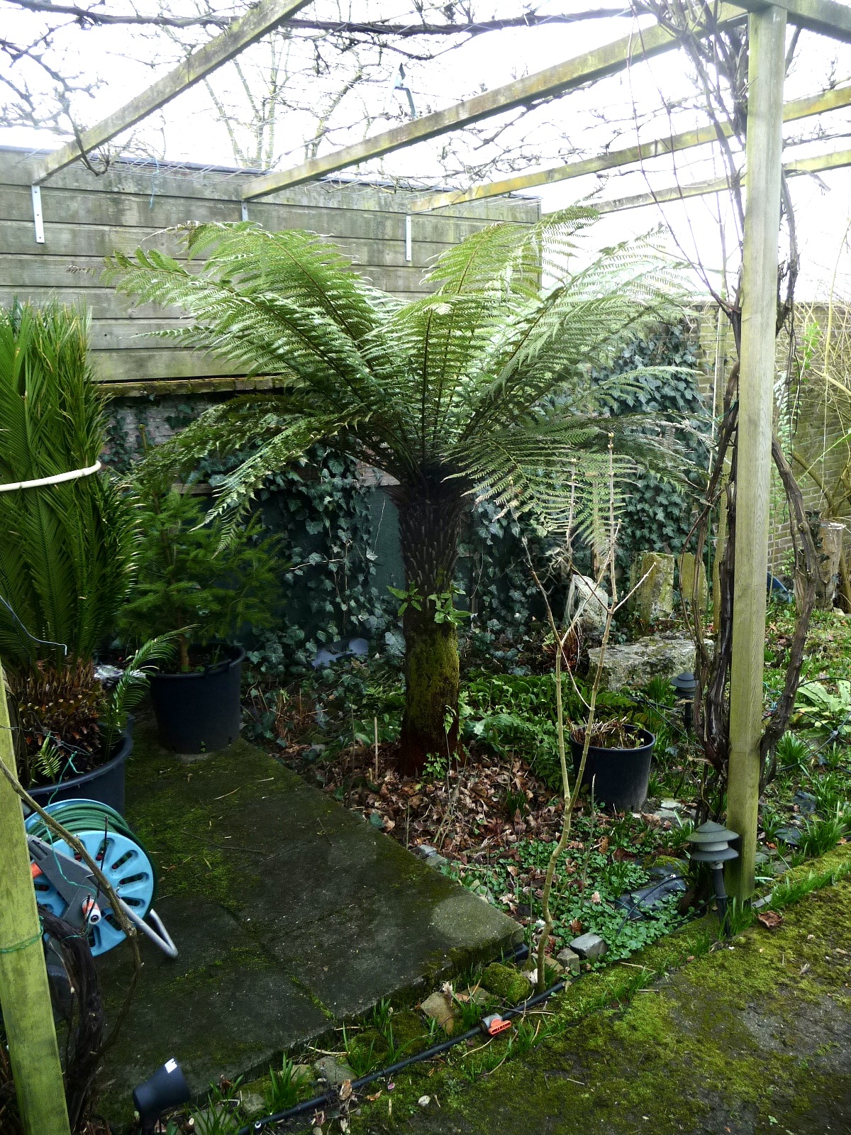 En nu maar hopen dat die weer mooi gaat uitlopen. Gelukkig zijn alle omringende jonge bomen onbeschadigt gebleven want ik heb schaduw nodig voor mijn boomvarens!