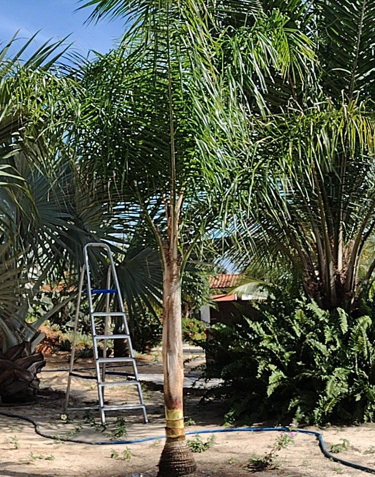 Iedere dag lukt op het moment nog net niet Pita. Gemiddeld kan ik iets van 5 noten per week oogsten van 3 bomen. Een vierde produceert op dit moment zijn eerste nootjes en een vijfde (malayan Gold) staat voor het eerst in bloei en zal zoetere gele Cocosnoten gaan produceren. In de toekomst zal dat dus wel gaan lukken.