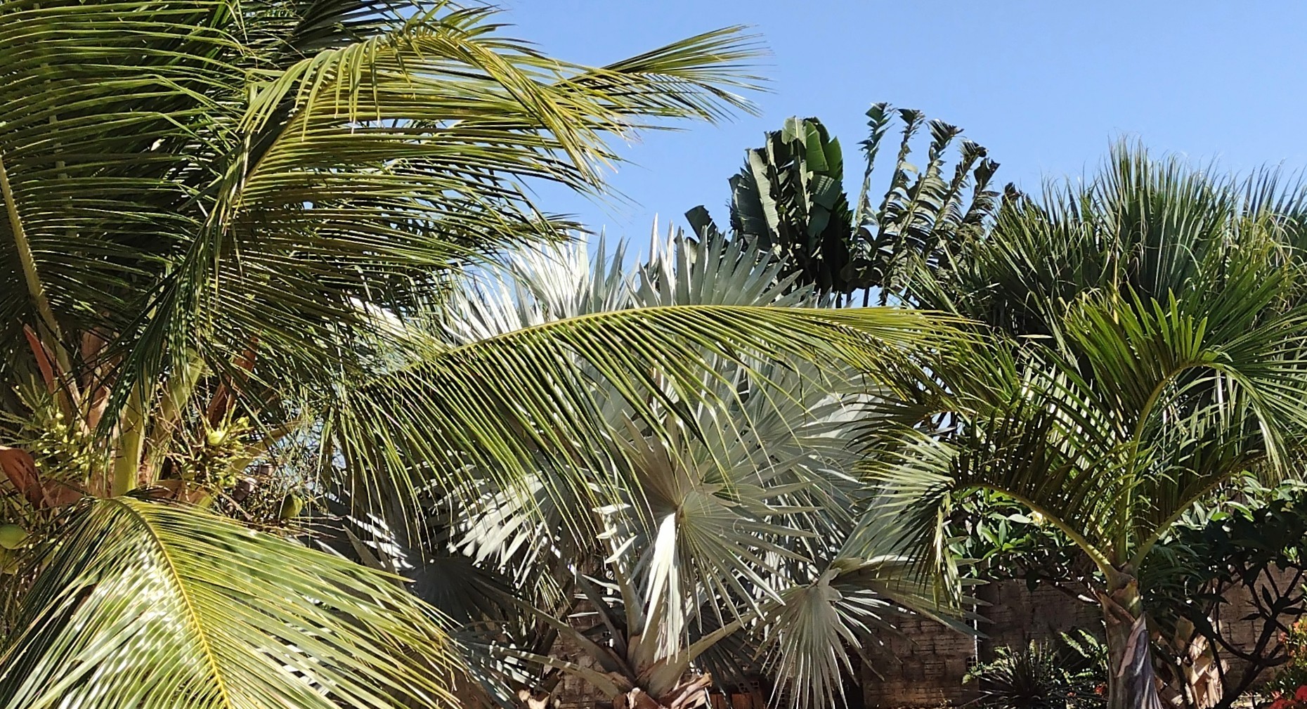 Onze tuin grenst hier direct aan een groot duingebied, dus het is ook nog is van dat stuifzand. Meestal strooi ik 1 tot 2 keer per jaar slow release NPK 10-10-10. Ondanks mijn zuinige bemesting doen de meeste palmen het er prima op. Het grote voordeel is dat je je planten niet kan verzuipen :lol: Zelfs als ik de tuinslang er een paar minuten naast leg ontstaan er nog geen plassen. Het draineert instantaan. Het nadeel is uiteraard wel dat je niet zomaar een paar dagen kan overslaan. Enkele dagen is nog niet direct een probleem, langer wordt wel direct zichtbaar. Met als resultaat verdroging, dor blad en stil vallende groei. Gemiddeld zijn we zo'n 2 tot 3 weken per maand hier, de rest van de tijd zitten we in ons huis in de stad en wordt de tuin bewaterd door onze vrouwelijke tuinman. Helaas is zij minder scheutig met water. Gedurende de periodes dat ik het zelf doe sla ik dus geen dag over. Soms zelfs 2 keer per dag. Zeker nu tijdens de droge periode draai ik er op een dag al gauw een kub of 4 tot 6 doorheen. Water is dus essentieel!! Gelukkig heb ik dat gratis tot mijn beschikking. Omdat we hier ook vlak bij een zoetwater meer wonen met gefilterd water uit het duingebied is mijn put nog nooit droog gevallen.