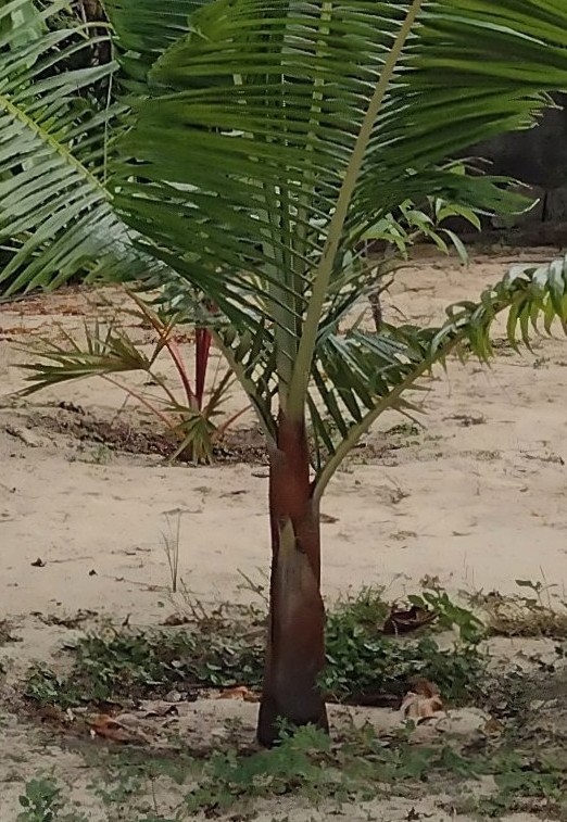 Hoi Lagarto, De grote meerderheid van onze planten zijn inderdaad helaas volledig afhankelijk van de bewatering. Dwz buiten het regenseizoen wat hier ongeveer voor een maand of 4 de kunstmatige watergift overneemt. De zandbodem in combinatie met het klimaat geven geen andere optie. Gelukkig kan ik al op veel plaatsen in de tuin de hoeveelheid wat afbouwen. Vanwege het bladerendak wat op termijn agv de groei voor de nodige schaduw zorgt. Slechts enkele soorten groeien onder de gegeven omstandigheden en kunnen zonder de kunstmatige watergift. Dat zijn oa de oudere Cocospalmen die erg diep wortelen en bij het grondwater kunnen. Gelukkig zit dat hier op slechts 6 meter, wat voor de regio relatief hoog is. Maar ook de 2 Pandanus soorten die ik hier heb staan krijgen geen water van de irrigatie. Verder heb ik zoals je zelf al noemde enkele Agave's en cactussen die ook nagenoeg nooit bewaterd worden.