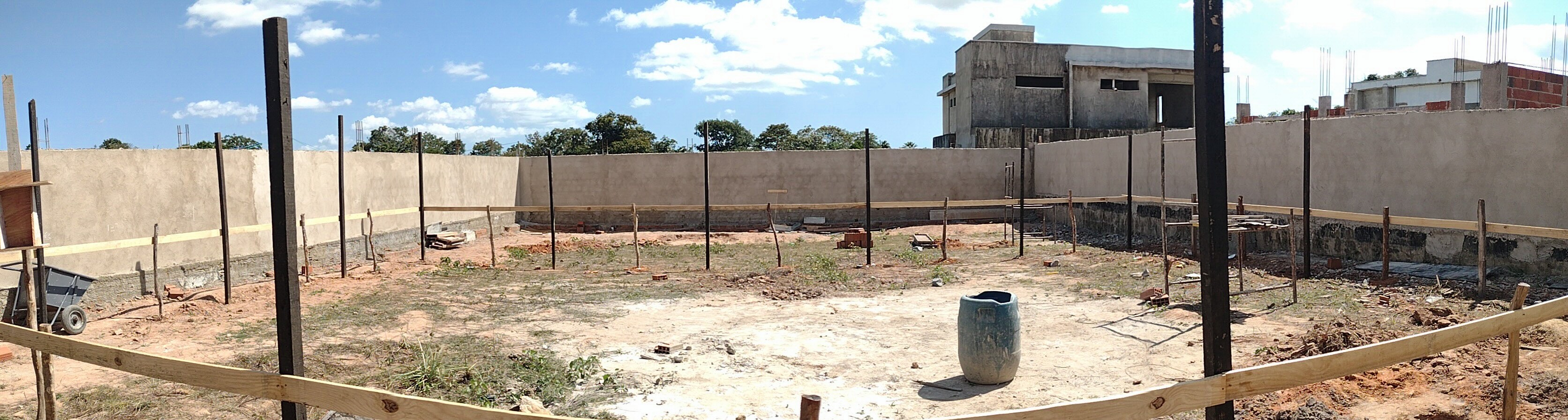 We zijn eindelijk gestart, vergunningen zijn rond, electriciteit voorziening is aangelegd en er is een begin gemaakt met de tuinafscheiding. Beide zijkanten en de achterkant van de tuin krijgen een 2 meter hoge muur om achter het huis wat privacy te genereren, de voorkant met de oprijlaan blijft volledig open.