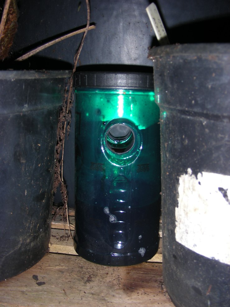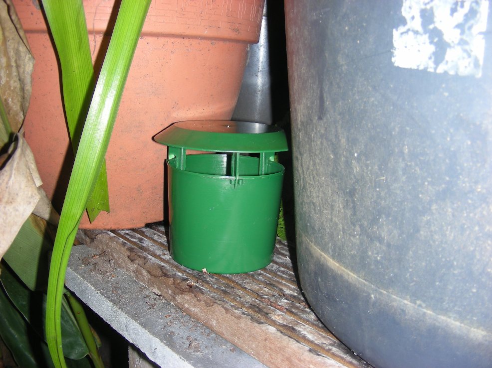 Ook heb ik een andere val geplaatst met lokstof, kijken wat het beste werkt.