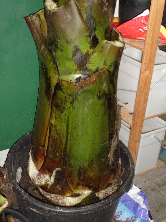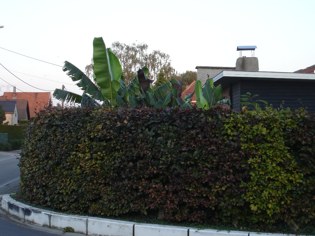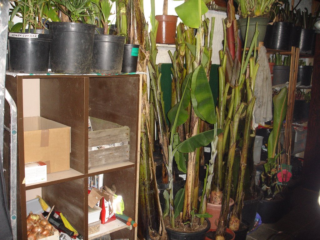 de herfst is ondertussen al een eindje gevorderd en zijn we begonnen om de planten uit te graven voor de overwintering,de planten uitgraven was absoluut geen probleem,ze naar de winterstalling krijgen was een ander paar mouwen.ik moet zeggen dat ten opzichte van vorig jaar mijn krachten heel wat verminderd zijn wat waarschijnlijk gedeeltelijk met mijn ziekte te maken heeft gehad en natuurlijk ook de grotere banananenbomen maar alle lof gaat naar mijn schoonbroer