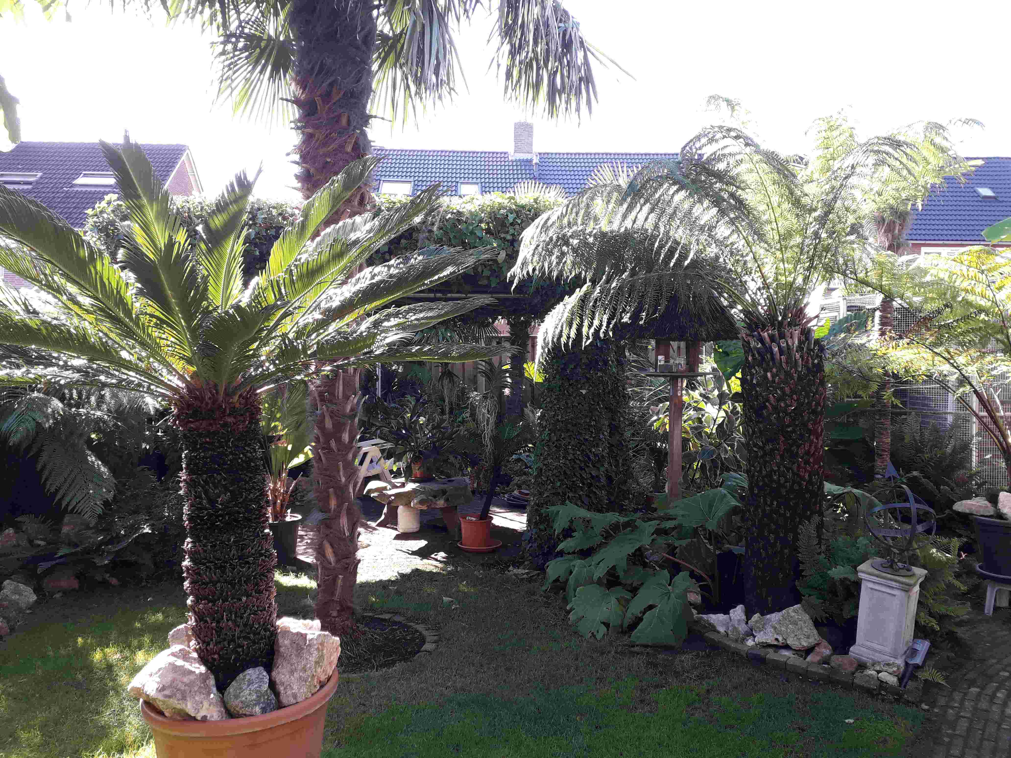 Wat ik steeds doe bij de boomvarens binnen zijn grote schalen met water eronder maar de potten zelf wel verhoogd (met wat piepschuim of stenen) zodat de wortels niet in het water blijven staan.