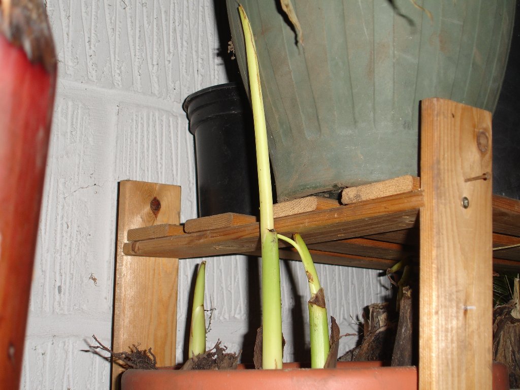 de bananen moet ik nu voor de 3e keer een stuk inkorten,die blijven maar groeien,ze zijn enkel stil gevallen tijdens de 2 weken strenge vorst toen was het in de garage 6 graden