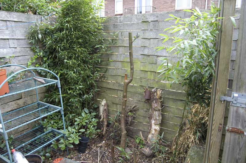 maar hopelijk groeit hij snel zodat hij straks boven de schutting uitkomt en de kroon alle ruimte heeft.
