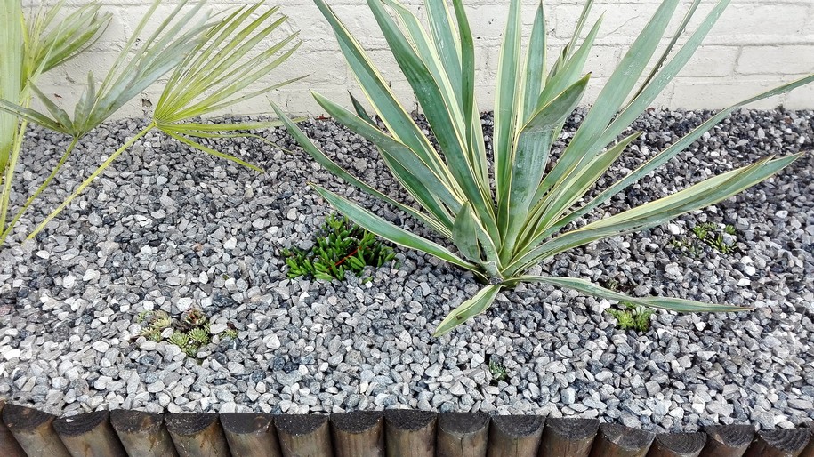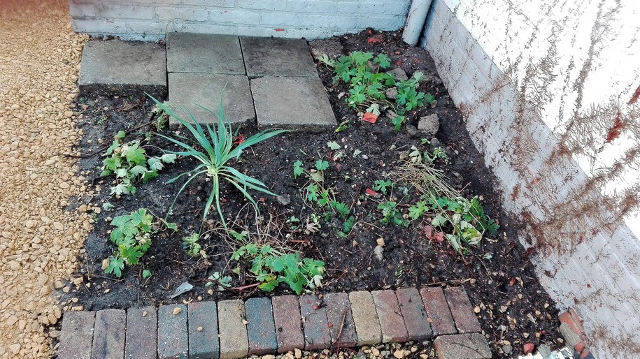 3 yucca in de grond plus speciaal soort geranium die tegen droogte en schaduw kan