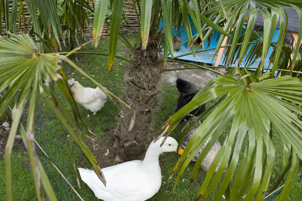 ons pluimvee heeft veel beschutting van de palmen gehad tijdens de vele regen