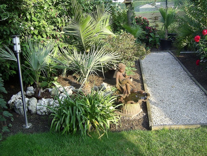 Mooi zeg, ik vind dat echt heel fraai exoten met conifeerachtigen op de achtergrond. fraaie planten, zeker je Butia en je Magnolia. Snoei je de laatste compact of groeit deze van zichzelf zo?