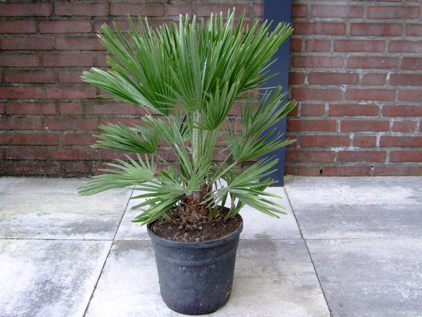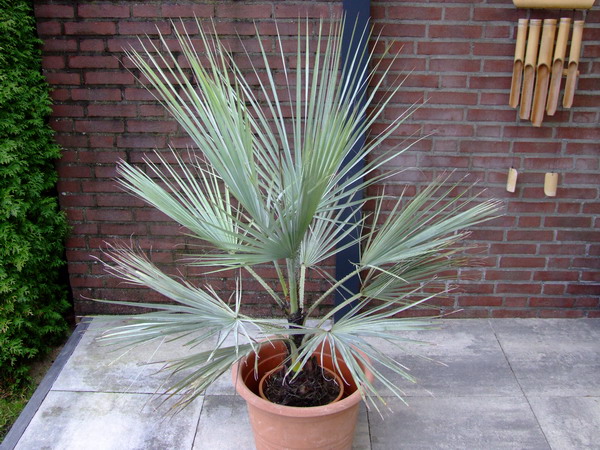 Eerste nieuwe aanwinsten dit jaar: 1 meter hoge Brahea armata en 1 kleine Chamaerops humilis etna.