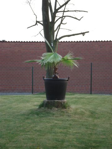 Heb je geen schrik dat de planten gaan verbranden, die Washingtonia bvb? Die vangt daar wel behoorlijk wat zon?