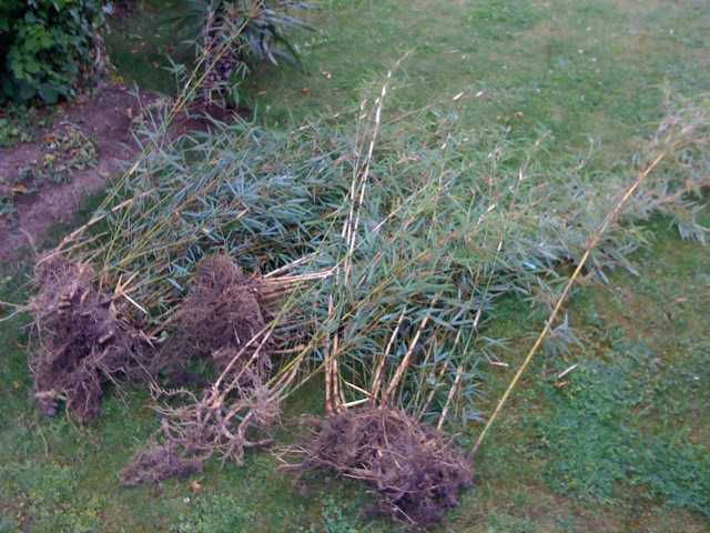 Zaterdag ben ik eindelijk mijn Fargesia robusta Campbells gaan ophalen om de bamboehaag verder te beplanten. Ik heb meteen een pol Fargesia sp. jiuzhaigou 1 meegenomen en kreeg er nog 2 flinke Phyllostachys aureosulcata 'Spectabilis' bij :) Die laatste hebben we wel op de helft moeten snoeien anders ging het niet in de auto.