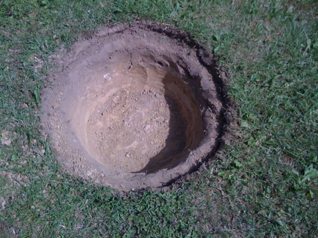 Daarna ben ik begonnen aan het plantgat voor de Trachycarpus van 19/6. Halverwege ben ik gestopt. Beenhard die grond. Dat project wordt in de loop van deze week verder gezet ;)