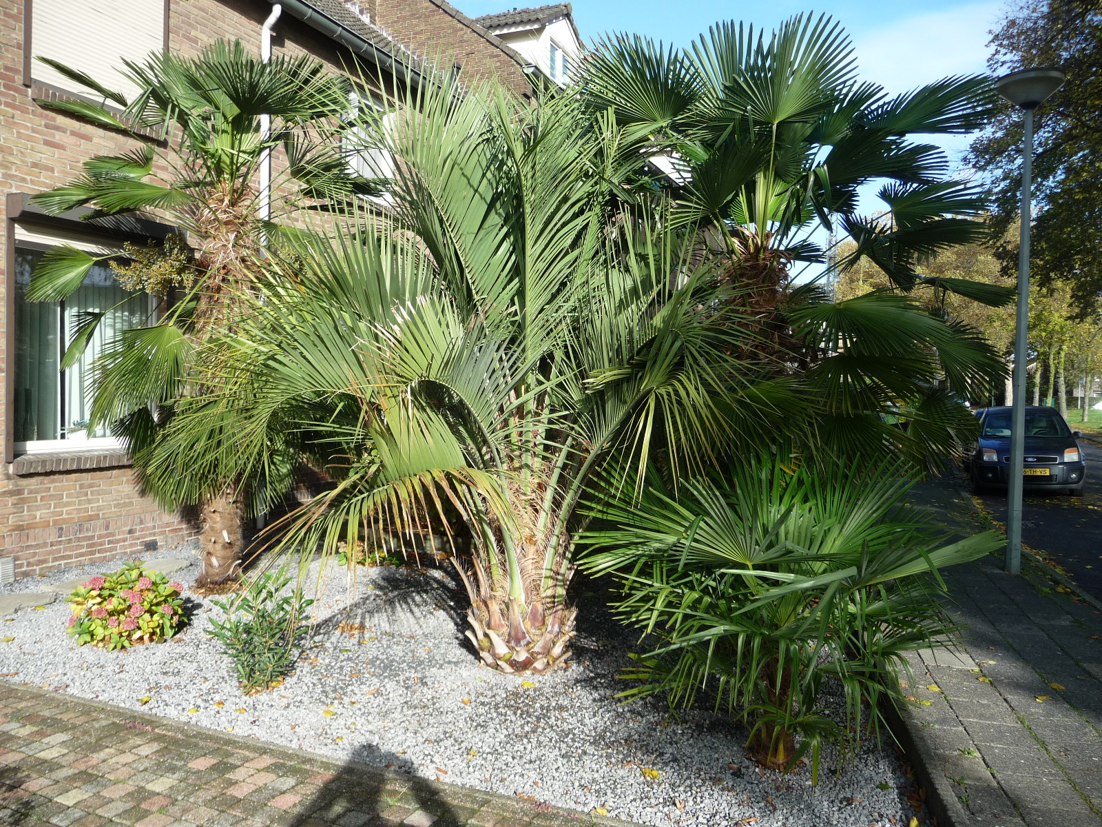 Ik vermoed dat zijn Trachy en Chamaerops voor de voortuin, en Butia voor achter zodat we ze niet zien... :mrgreen: