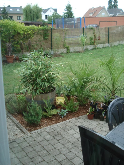 Gisteren van het mooi weer geprofiteerd om de laatste 2 Chamaeropsen in de borders te zetten.