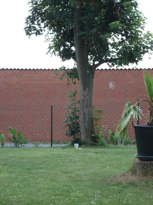 Nu nog met stoepkrijt maar als we het leuk blijven vinden zal ik het wel eens met verf doen.