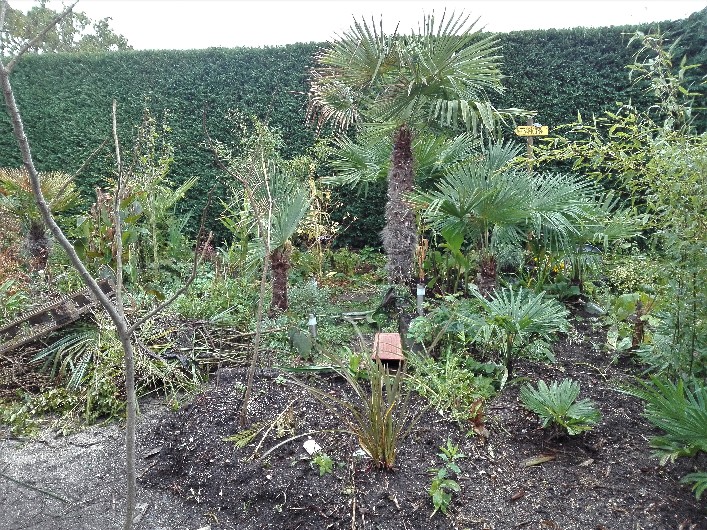 Trachycarpus latisectus(2x) en Phoenix roebelenii ‘wild form’