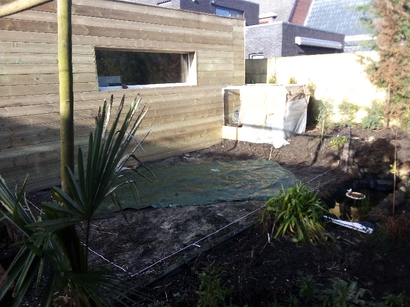 Voila eens werk gemaakt van mijn toekomstig terras. Betondals erop en dan kan de serre er ook op maar alles op zijn tijd. Die constructie is een rek met alle winterharde palmpjes op zodat ik binnen wat tijd heb. Bovenop is vliesdoek maar een vraagje daaromtrent laat dat voldoen vocht door zodat ik niet moet water geven of moet ik toch beperkt water geven?
