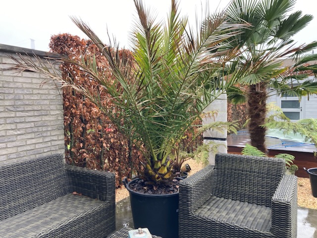 Heb hetzelfde als 2 vorige keren er af gedaan net iets minder dan de helft en nu krijgt hij wekelijks palmbooster 4 weken lang hopelijk evenveel succes als vorige keren …ik doe dit ook om hem zo lang mogelijk in een zo klein mogelijke Kuip te kunnen houden want hij word groot voor mijn tuin maar wens hem zo lang mogelijk te houden maar eens hij te groot word voor de 130 liter Kuip vrees ik dat ik er toch afscheid van zal moeten nemen