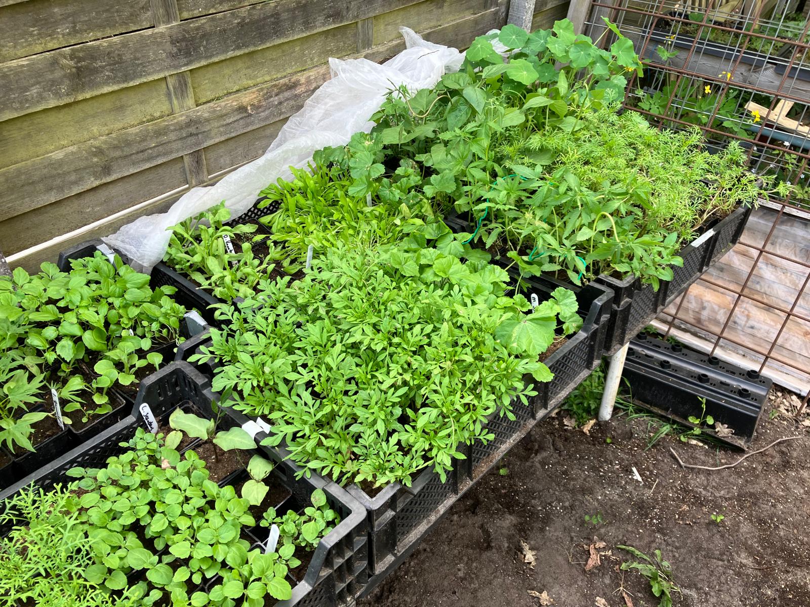 Deze rhizomen heb ik door het maken van bermen ook enigszins verspreid door de tuin.