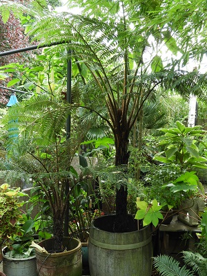 zolang je alles nat kunt houden [stammen /kluiten] zal dat zeker gaan, bij mij is enkel de Cyathea medullaris die brandschade krijgt bij volle zon op de kruin en nieuwe uitlopende rollen misvormen naar alle kanten, daarom een grote parasol er boven, andere cyathea soorten zoals C.brownii / cooperi kunnen er beter tegen
