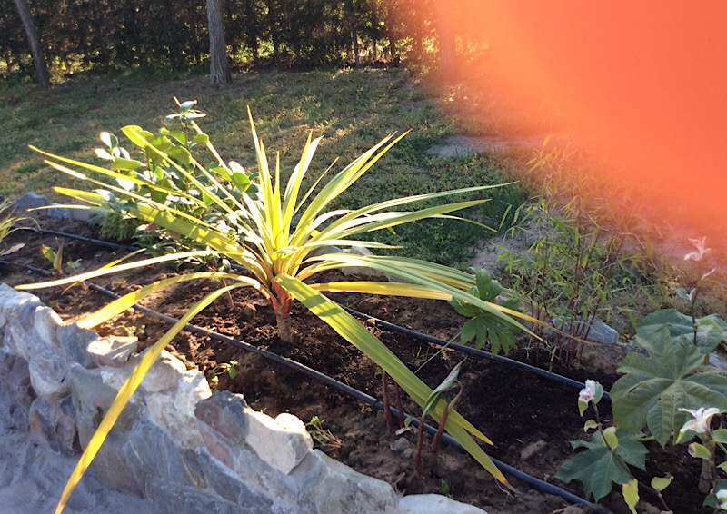 Vlonder in aanleg aan het strand. De bloembakken moeten nog afgemaakt worden. Er staan al 25 oleanders in verschillende maten in en 3 Albizia tropical Dreams die een bladerdak boven het terras moeten gaan vormen. Aan de zijkant is de planning om ooit een zwemvijver aan te leggen met waterval.