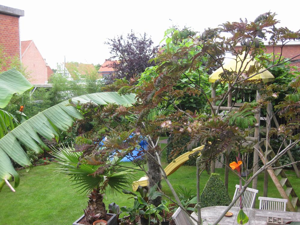 Hij staat!! Was nog een heel gedoe om hem in de auto te krijgen en eruit maar het is gelukt, mag je er veel plezier van beleven. Nu tot de winter 2x per dag sproeien met minimaal 5 liter per keer in de kroon, beste is in de ochtend en de avond.