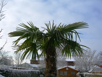 Op zich toch ook mooi hé, zo'n ondergesneeuwde palmboom. Ik heb graag afwisseling, zolang het maar niet te lang duurt, zoals nu het geval is met de winter