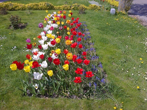 ze volgen elkaar mooi op en voor de blauwe druifjes stonden er narcissen zodat het nooit kaal werd :)