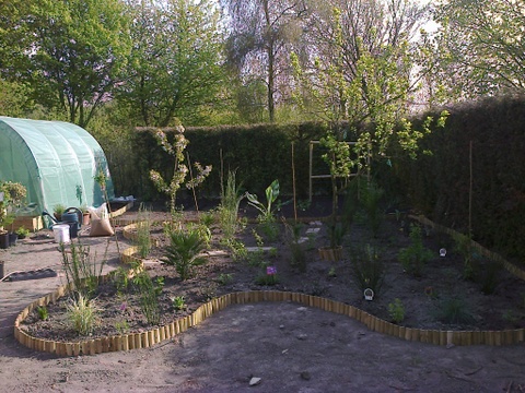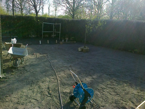 Vorige winter zijn we verhuisd en na dat de binnen volledig klaar was ben ik maar eens buiten begonnen. Toen het nog vroor alles gras eraf beginnen steken, ben ik wel even mee zoet geweest en daarna alles frezen en mooi leggen. En de rest wees zijn zelf uit. Graag jullie mening.