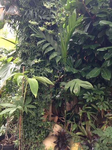 Ik probeer alles uit maar het grootste deel bestaat toch wel uit bladplanten, met name palmen, bananen en bekende harde jongens Cycas, Yucca, en veel Fatsia en Canna.