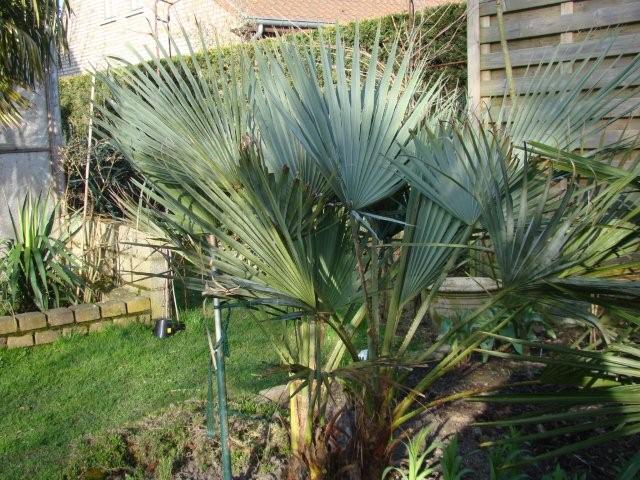 De chaemaerops humilis is blijkbaar blijven doorgroeien en heeft nu een zijscheut met een stammetje ( dat stammetje was er vorige zomer nog niet.